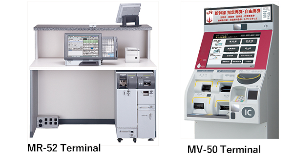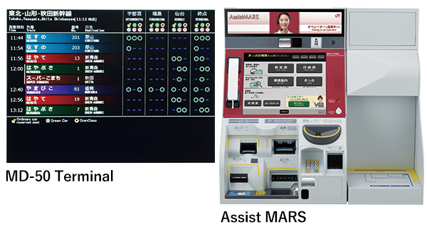 JR Systems has developed three types of MARS terminals used by JR Group companies: the MR terminal, used by ticket office staff; the customer-facing MV terminal, which can be operated in four languages; and the MD terminal, which displays the latest information on reserved seat availability.