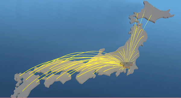 JR-NET is the backbone network that connects the MARS terminals at nationwide ticket offices to the MARS system. This secure closed network uses a high-quality connection to transmit data entered into MARS terminals to the MARS system for processing, JR-NET also oversees the statuses of approximately 10,000 MARS terminals around Japan via its 24/7 monitoring system.